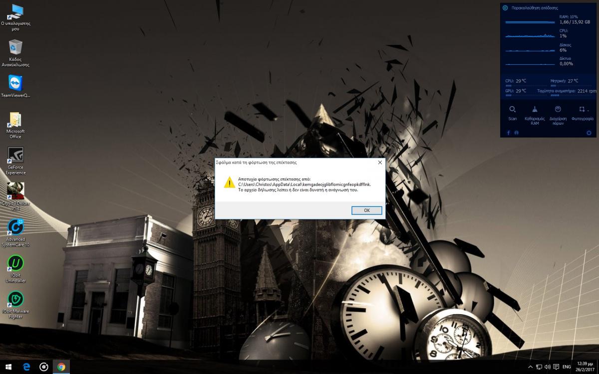 Επισκέπτης Δημοσ. 26 Φεβρουαρίου 2017 Δημοσ. 26 Φεβρουαρίου 2017 Κάνε έναν έλεγχο και με το adwcleaner να καθαρίσουν οι browsers. Επίσης πήγαινε στη διαδρομή που λέει το παράθυρο σφάλματος C:/users/christos/appdata/local και σβήσε το φάκελο kemgadeojp.
