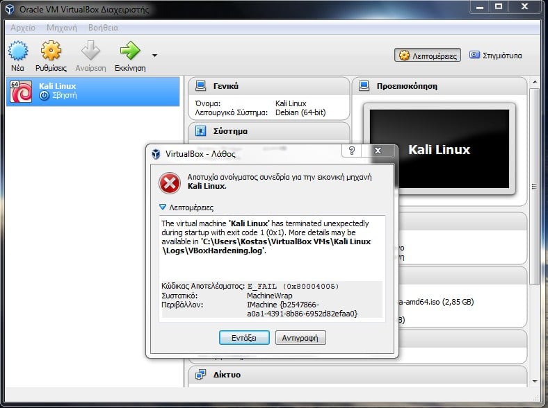 Liam Lawrence Δημοσ. 29 Μαρτίου 2017 Δημοσ. 29 Μαρτίου 2017 Παω να εκκινησω την εικονικη μηχανη μου και μου πεταει αυτο βλεπετε στην εικονα..Τι παιζει; δεν μπορω να βρω λυση