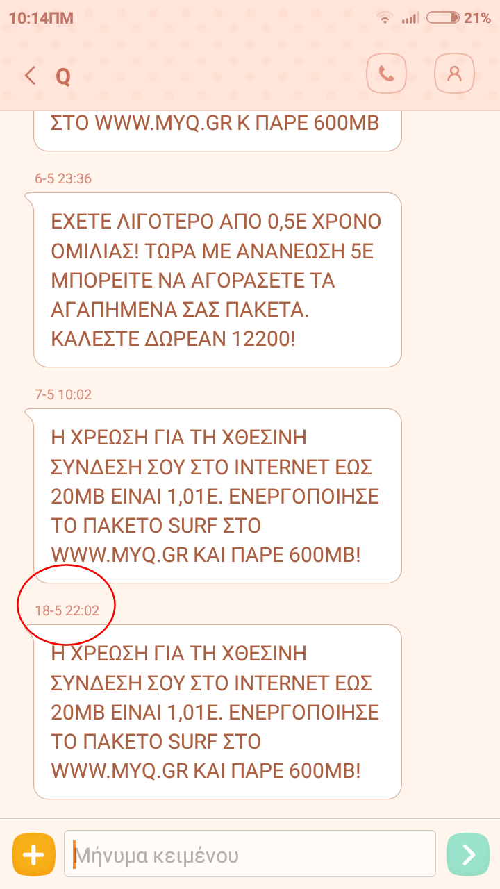 papars Δημοσ. 7 Μαΐου 2017 Δημοσ. 7 Μαΐου 2017 Έχω πάρει μία κάρτα Q για το πιτσιρίκι για ώρα ανάγκης. Της βάζω ένα €5 που και που για να μην ακυρωθεί ο αριθμός. Εδώ και λίγες βδομάδες, αυτό το €5 εξαντλείται σχεδόν άμεσα σε σημείο που το τηλέφωνο να είναι ουσιαστικά άχρηστο. Βλέπω ότι υπάρχουν χρεώσεις internet που δεν θα έπρεπε αφού τα Mobile data είναι κλειστά. Την Παρασκευή 5 Μαίου δεν είχε σχολείο και το τηλέφωνο έμεινε σπίτι όπως και χτες Σάββατο 6 Μαίου. Σήμερα έρχεται SMS για χρέωση data της προηγούμενης μέρας - που δεν το είχε κανένας στα χέρια του. Μάλιστα δεν είχε και μονάδες για να γίνει η σχετική χρέωση (€0.05). Κοίταξα και τα data είναι κλειστά. Και στο καπάκι νέο SMS για μελλοντική χρέωση !!! με ημερομηνία 18 Μαίου ... Πάνε καλά εκεί στην Q; Προτείνετε κάτι άλλο να πάρω στο πιτσιρίκι μόνο για ώρα ανάγκης; Δεν με ενδιαφέρουν τα data και το τηλέφωνο πρέπει να είναι smart για διάφορους λόγους (αλλιώς θα του είχα δώσει ένα feature phone). Υπάρχει κάποια λύση για χρήση μόνο εισερχομένων κλήσεων που να μην θέλει 5 ευρώ κάθε βδομάδα;