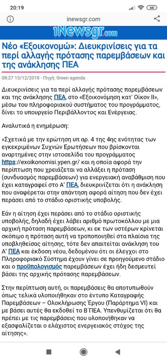 Vasilhs09 Δημοσ. 6 Απριλίου 2020 Δημοσ. 6 Απριλίου 2020 18 ώρες πριν, kanesaxo είπε Συγνώμη δε διάβασα όλη τη στιχομυθία μέχρι τέλους. Πολύ απλά για να μην έχεις πρόβλημα, θα τοποθετήσεις την εξωτερική πόρτα από την τσέπη σου. Ενταξει έβγαλα άκρη,στο παρακάτω άρθρο λέει ξεκάθαρα τι μπορεί να γίνει σε περίπτωση που κρίνεται ότι πρέπει να τροποποιηθούν οι παρεμβάσεις σε σχέση με το Α πεα παρόλο που ο επιλεξιμος προϋπολογισμός έχει βγει σύμφωνα με την αρχική πρόταση παρεμβάσεων 3