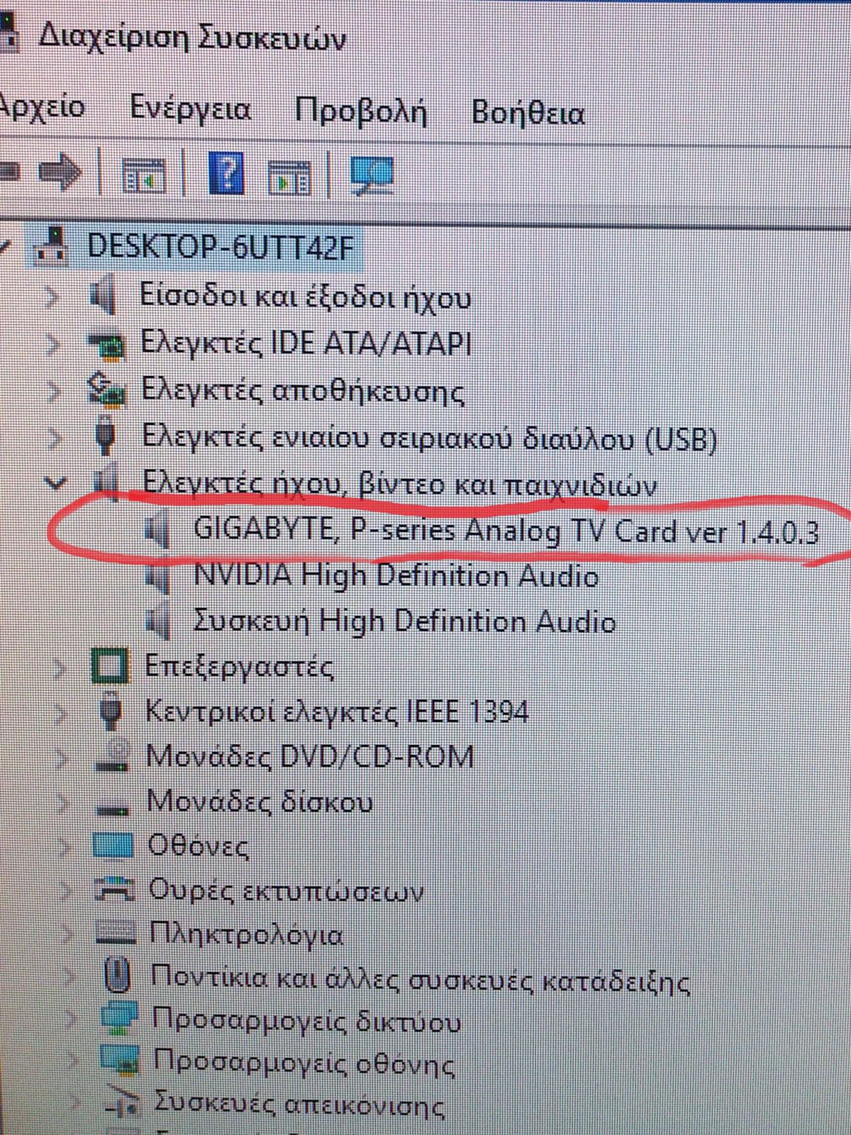 tnt-4- Δημοσ. 7 Ιουνίου 2017 Δημοσ. 7 Ιουνίου 2017 καλησπερα σας. εγκατεστησα τα windows 10 και δεν μ αναγνωριζε την καρτα τηλεορασης. την εβγαζε ως αγνωστη συσκευη. μολις εγκατεστησα τους divers για τα 7 την αναγωρισε αλλα δν λειτουργει. υπαρχει κατι αλλο π μπορω να δοκιμασω η να γυρισω στα 7;;
