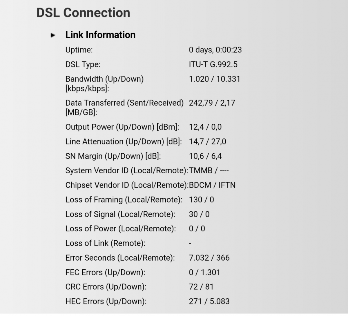 NikosKallithea Δημοσ. 17 Ιουνίου 2017 Δημοσ. 17 Ιουνίου 2017 Καλησπέρα, Έχω μια σύνδεση adsl2 forthnet η οποία τόσο καιρό λειτουργούσε σχεδόν απροβληματιστα με συγχρονισμό στα 14mbps. Έχει 2-3 μέρες τώρα πέφτει στα 10 μετά στο 1.7 πάει στα 6 κι αν είμαι τυχερός θα μείνει στα 10. Το box του ΟΤΕ είναι σε κακό χάλι, μισοανοιγμενο οπότε ψιλιαζομαι ότι παίζει εκεί θέμα και δε θέλω να βάλω χέρι. Εγώ απ τη μεριά μου δοκίμασα νέα πρίζα, το modem απευθείας στο καλώδιο όσο πιο κοντά γίνεται στο box αλλά τα ίδια. Μπορεί κάποιος να μου πει μια γνώμη για τα στατιστικά της γραμμής; Εχεις πρόβλημα στην γραμμή σου αλλά μεχρι να βρεις άκρη με τα τηλέφωνα κλπ, ο ηλιος θα λάμψει, η θερμοκρασία θα ανέβει και μαζι της θα ανεβει και η ταχυτητα σου στο adsl, υπομονή λοιπόν