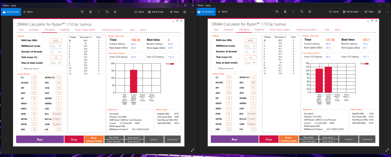 overpower Δημοσ. 11 Φεβρουαρίου 2020 Δημοσ. 11 Φεβρουαρίου 2020 (επεξεργασμένο) Δοκιμασα το ryzen dram calculator. Αρχικα, απο το thaiphoon λογικα εχω βαλει σωστα settings στο calculator ε? Επελεξα hynix afr με βαση το part number Θα το αφησω ετσι για λιγες μερες και θα δω με το fast πως θα παει. Επισης κατι που παρατηρησα στο bios. το trfc οταν μπηκα bios ηταν 138 νομιζω. Το οτι το εβαλα 420 δεν το εκανα πιο αργο? Μηπως εδειχνε τοσο μεσα στο bios αλλα στην πραγματικοτητα ηταν πιο υψηλο? τα timings φαινονται στο benchmarks. Επισης, εκει που λεει best time = 130, τι ειναι? Γιατι πριν τα πειραξω ειχα κανει 2, το πρωτο το αποθηκευσα (156 sec) και το δευτερο ειχε κανει σιγουρα 140+ Στις 8/2/2020 στις 10:01 ΜΜ, yiannis1991 είπε Το Vcore όμως δεν πέφτει ποτέ. Ακόμη και σε intel burn test έκει βράχος. Ε δεν γίνεται να μην υπάρχει καθόλου vdroop. Ενώ το SVI2 πέφτει σε load.. Εννοεις για να πεσει σε idle? Αν ναι, τοτε απο τα power settings πρεπει να απενεργοποιησεις το 100% σε cores parking και speed https://www.overclock.net/forum/297-general-processor-discussions/1544554-core-parking-windows-disable-more-performance.html Επεξ/σία 11 Φεβρουαρίου 2020 από overpower