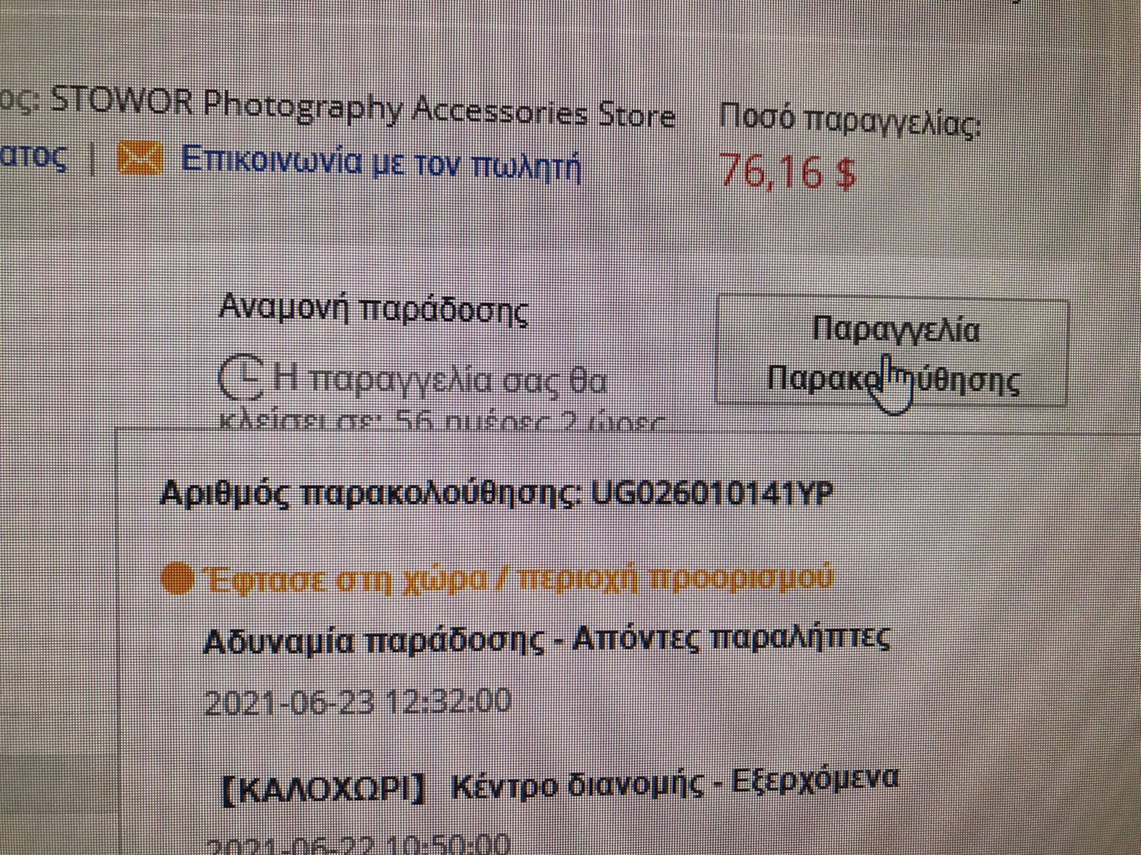 Mmaker Δημοσ. 24 Ιουνίου 2021 Δημοσ. 24 Ιουνίου 2021 Καλημέρα.Έχει γίνει μια παραγγελία ένα τρίποδο από Ali, και τσεκάροντας την παράδοση που γράφει ότι είναι ήδη τελωνείο.Οταν με το ποντίκι πάω πάνω απ την παρακολούθηση,μου γράφει κάτι για Καλοχώρι και αδυναμία παράδοσης!(είμαι Αθήνα...) Επίσης αναφέρει για εκτιμώμενη παράδοση 10-31 Ιουλίου...Τι πιστεύετε έχει γίνει και μήπως πρέπει να επικοινωνήσω κάπου στο...Καλοχώρι?Εκτελωνίζουν και από εκεί?
