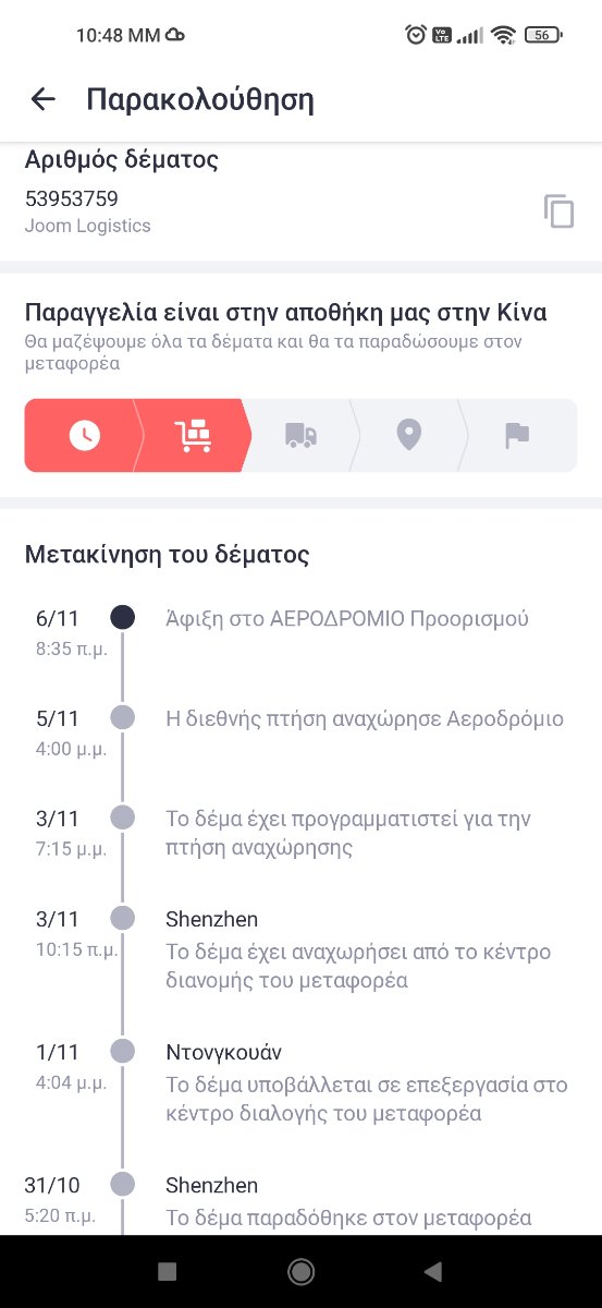 Dimmi82 Δημοσ. 9 Νοεμβρίου 2021 Δημοσ. 9 Νοεμβρίου 2021 Καλησπέρα και ευχαριστώ προκαταβολικά για τη βοήθεια σας ... Πριν δύο βδομάδες έκανα μια παραγγελία 43 ευρώ από joom ... ,Μου λέει ότι έχει γίνει άφιξη στο αεροδρόμιο του προορισμού ....εδώ και 5μερες έκτοτε τίποτα ... Και ο κωδικός που μου έχουν δώσει όταν τον ψάχνω είναι άκυρος ... Ξέρει κάποιος με τι μεταφορική έρχεται η joom σπίτι ? Επίσης και μερικές ακόμη παραγγελίες από wish και alli express .. έχουν αποσταλεί κι έχουν κολλήσει εκεί αυτά... 11 λεπτά πριν, Dimmi82 είπε Καλησπέρα και ευχαριστώ προκαταβολικά για τη βοήθεια σας ... Πριν δύο βδομάδες έκανα μια παραγγελία 43 ευρώ από joom ... ,Μου λέει ότι έχει γίνει άφιξη στο αεροδρόμιο του προορισμού ....εδώ και 5μερες έκτοτε τίποτα ... Και ο κωδικός που μου έχουν δώσει όταν τον ψάχνω είναι άκυρος ... Ξέρει κάποιος με τι μεταφορική έρχεται η joom σπίτι ? Επίσης και μερικές ακόμη παραγγελίες από wish και alli express .. έχουν αποσταλεί κι έχουν κολλήσει εκεί αυτά...