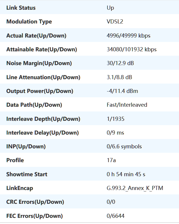 nosstrom Δημοσ. 5 Νοεμβρίου 2017 Δημοσ. 5 Νοεμβρίου 2017 Καλησπέρα, συνδέθηκα και εγώ σε VDSL με πάροχο Vodafone μιας και τοποθετήσανε καμπίνες σε όλη τη περιοχή μετά από αναμονή 1.5 χρόνου και ταχύτητας 7Mbps. H καμπίνα που είμαι συνδεδεμένος είναι στα 200 μέτρα περίπου ,υποθέτω 200 γιατι δεν ξέρω τη διαδρομή του καλωδίου.Το καλώδιο απο τον κατανεμητή στο σπίτι μου είναι καινούργιο και χρησιμοποιώ το modem της Vodafone. Δεν είναι ότι έχω παράπονο από τη ταχύτητα με την οποία σερφάρω η κατεβάζω απλά μια παρατήρηση βλέπωντας τα στατιστικά της γραμμής μου. Παραθέτω τα στατιστικά για να έχουμε μια ολοκληρωμένη εικόνα. Η ταχύτητα που κατεβάζω είναι στα 5.30-5.5 MB/s, άψογα, αλλά κρίνοντας απο τα στατιστικά της γραμμής γιατί δε πάει στα 6 MB/s? Γιατι στο speedtest μου δείχνει 44 Mbps ? Έχουν κόφτη, Είναι θεωρητικές οι ταχύτητες που δίνουν ? Ευχαριστώ.