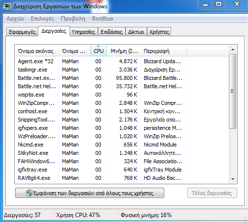mphxths Δημοσ. 21 Δεκεμβρίου 2017 Δημοσ. 21 Δεκεμβρίου 2017 Εγω παντως θα παταγα και το κουμπακι που λεει "Εμφανιση διεργασιων απο ολους τους χρηστες". Δεν παραξενεψε κανεναν που το cpu ειναι στο 47% και η στηλη της cpu ειναι ολα μηδενικα?Προφανως καποια διεργασια του συστηματος χρησιμοποιει τον επεξεργαστη και απλα δεν την βλεπουμε στο σκρινσοτ γιατι δειχνει εξ'ορισμου μονο τις διεργασιες του χρηστη. Πατα το κουμπακι , δες ποια διεργασια τρωει επεξεργαστη και μιλα με την γραμματεια του φορουμ για νεο ραντεβου