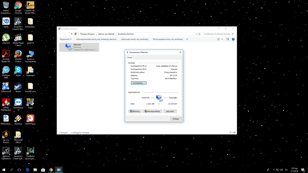 micos000 Δημοσ. 7 Ιανουαρίου 2018 Δημοσ. 7 Ιανουαρίου 2018 Δώσε και ένα screen από τις Λεπτομέρειες να δω τι λέει (tip: μπορείς να πάρεις screenshot μόνο από το ενεργό παράθυρο με τον συνδυασμό CTRL+PRTSCR) Δοκίμασε και ένα flushdns. Δεξί κλικ στην έναρξη->Γραμμή εντολών (Διαχειριστής) ή powershell (Διαχειριστής), ότι έχει και δώσε με την σειρά ipconfig /release ipconfig /renew ipconfig /flushdns Αν δεν γίνει κάτι μπορείς να διαγράψεις τον προσαρμογέα από τη διαχείριση υλικού και κάνε επανεκκίνηση για να τον ξαναστήσει.