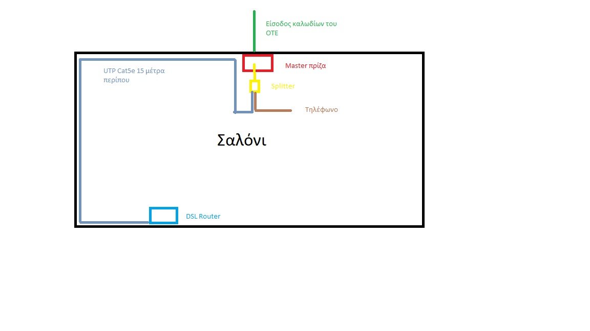jeng7 Δημοσ. 11 Ιανουαρίου 2018 Μέλος Δημοσ. 11 Ιανουαρίου 2018 Έκανα μια πρόχειρη κάτοψη στο paint, πάντως στην master πρίζα με συνδεμένο το Ρούτερ χωρίς σπλίττερ και τηλέφωνο έχω 13.5db SNR και 75000-77000 attainable σε σύγκριση με την θέση που βρίσκεται το ρούτερ στην κάτοψη.