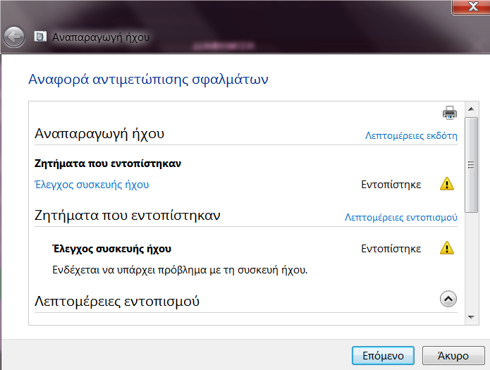 lek88 Δημοσ. 2 Φεβρουαρίου 2018 Δημοσ. 2 Φεβρουαρίου 2018 (επεξεργασμένο) Γειά σας. Έχω ένα λαπτοπ με Windows 7. Ενώ έπαιζε κανονικά ο ήχος κάτι πείραξα και πλέον δεν ακούγεται τίποτα. Κάποια κατάργηση έκανα στο σύστημα ήχου. Πάτησα κάτω δεξιά που είναι το κλασικό εικονίδιο του ήχου, το άνοιξα και μετά στις ρυθμίσεις που άνοιξε έκανα κατάργηση μιας επιλογής που λεγόταν L R . Και πλέον δεν παίζει τίποτα. Πως το φτιάχνω ξανά; Λογικά τα κανάλια ήχου έκανα απεγκατασταση. Και τώρα όταν πατάω το κλασικό εικονίδιο του ήχου (ένταση) μου πετάει μήνυμα ότι η αντιμετώπιση προβλημάτων δεν αναγνώρισε το πρόβλημα. Επεξ/σία 2 Φεβρουαρίου 2018 από lek88