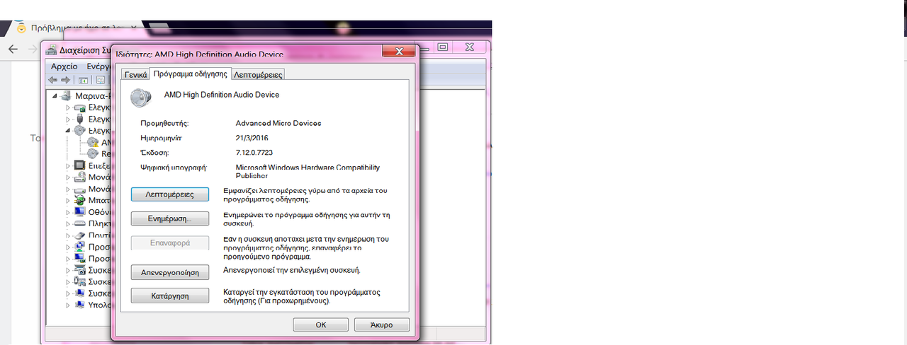 postfire Δημοσ. 2 Φεβρουαρίου 2018 Δημοσ. 2 Φεβρουαρίου 2018 (επεξεργασμένο) εκει πανω πηγαινε AMD high definition audio device κανε δεξι κλικ και ενημερωση θα σου βρει τον driver τον πειλεγεις και τον περναει Επεξ/σία 2 Φεβρουαρίου 2018 από postfire
