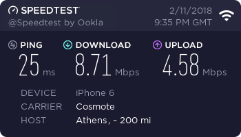 Sonyos Δημοσ. 11 Φεβρουαρίου 2018 Μέλος Δημοσ. 11 Φεβρουαρίου 2018 5 ώρες πριν, 7nisiotis είπε Κάνει αυτόματα ο ΟΤΕ update. Δοκίμασες από κάποια κινητή συσκευή να δεις το μαξ download speed? Me WiFi εννοείς ; Και σε ποια σελίδα ; Με κινητό και WiFi φαίνεται στην εικόνα . Πάντως το upload παραμένει σταθερό σε κάθε περίπτωση . Πάντως περίμενα στάνταρ 48-50 mbps και όχι Οποτε τύχει να πιάνει ταχύτητα .... αξίζει να δοκιμάσω αλλο ρουτερ εκτός του ΟΤΕ ; Αν κι απ όσο έχω δει ειναι αρκετά ακριβά