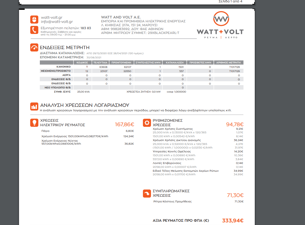 η τιμή kw ίδια , η ρήτρα αναλογικά με την περίοδο κατανάλωσης
