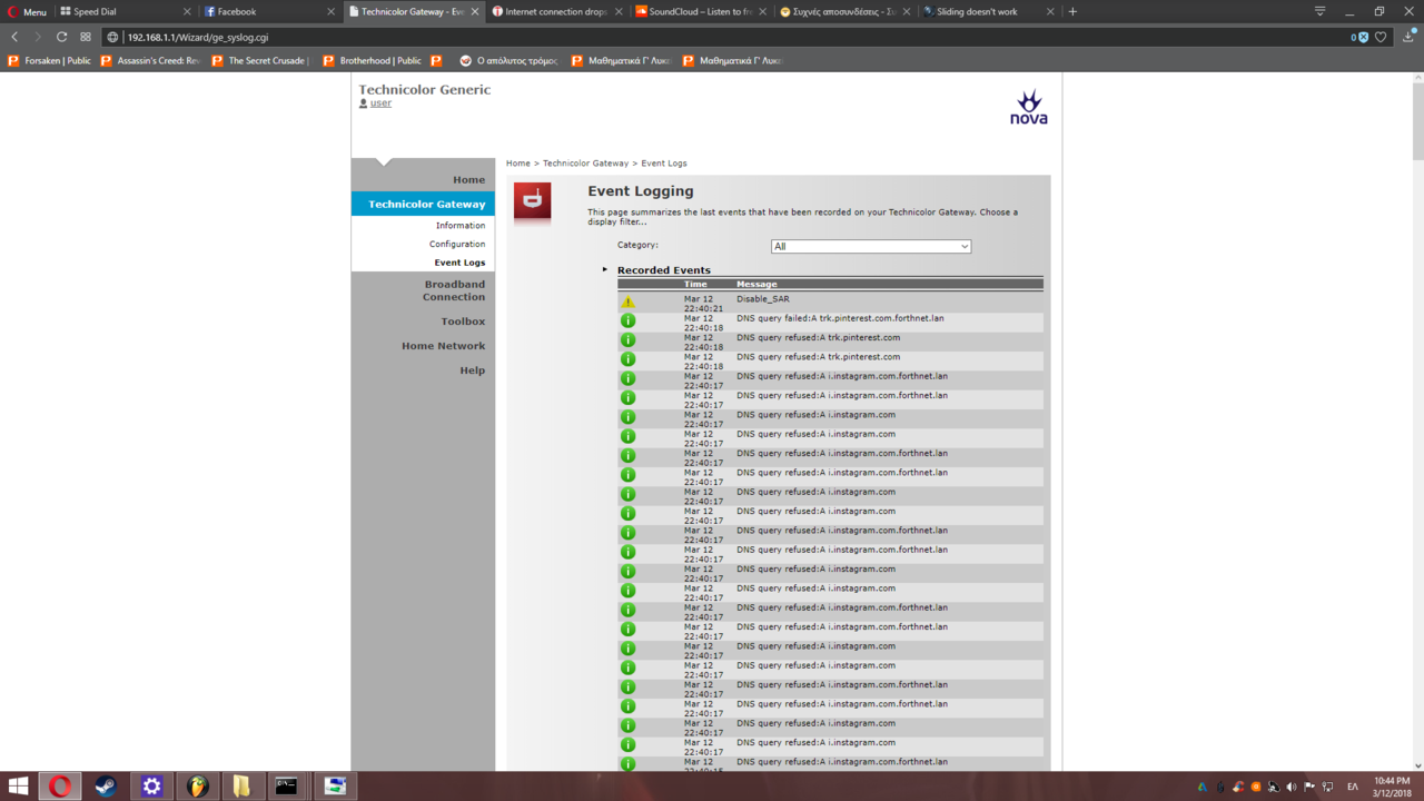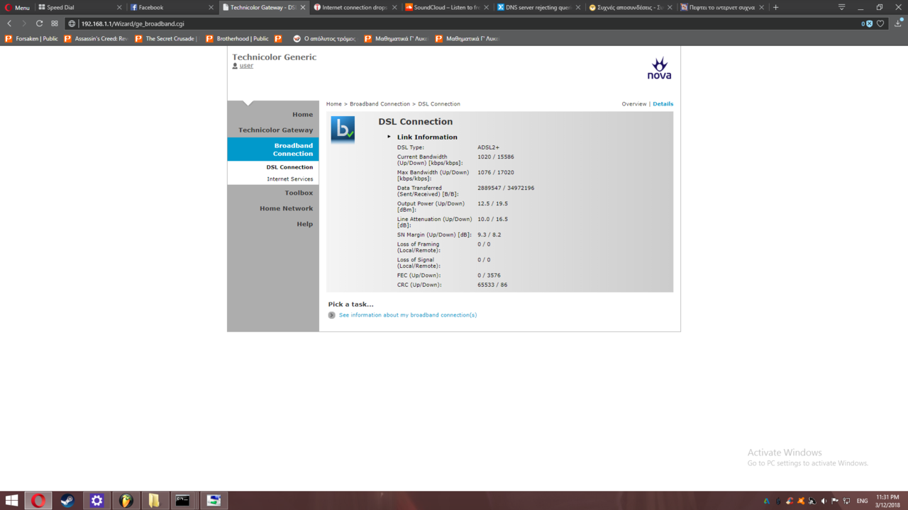 Ecklipse Δημοσ. 12 Μαρτίου 2018 Δημοσ. 12 Μαρτίου 2018 (επεξεργασμένο) Τις τελευταίες 2 εβδομάδες έχω αποσυνδέσεις του ιντερνέτ πάνω κάτω κάθε μία ωρα, μπορεί και πιο συχνά... Δεν φταιει συσκευή απλα εμφανίζεται στο ρούτερ ένα κόκκινο φωτακι αντί για πράσινο. Επίσης έχω παρατηρήσει μεγάλο αριθμό crc erros και στο log history κάθε φορά που γίνεται αποσύνδεση μου εμφανίζει τα εξής πρώτα στην σειρα.Να προσθέσω πως το ρούτερ το αλλάξαμε σήμερα διότι το παλιό δεν άνοιγε καν (άρα δεν πιστεύω να φταίει το ρουτερ) επίσης πήρα τηλέφωνο στην φορτνετ και μου βρήκαν ένα τηλέφωνο να προκαλεί πρόβλημα το οποίο αποσυνδεσα αλλά τα crc erros αυξηθηκαν και οι αποσυνδεσεις εμειναν Επεξ/σία 12 Μαρτίου 2018 από Ecklipse