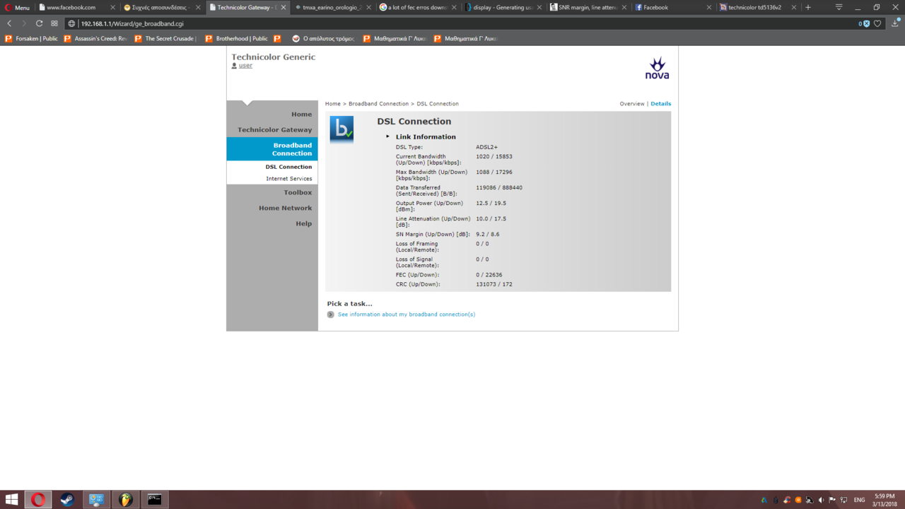 Ecklipse Δημοσ. 14 Μαρτίου 2018 Μέλος Δημοσ. 14 Μαρτίου 2018 Λοιπον προσπαθησα και με ενα αλλο ρουτερ αλλα δεν αναβει το λαμπακι του ιντερνετ με τιποτα... Τεσπα ενδιαφερον ειναι το γεγονος οτι αλλαξα channel απο auto στο 6 και δεν βλεπω crc erros αλλα ειναι ακομα πολυ νωρις θα το αφησω να δω ποσο θα ειναι τo uptime αυριο