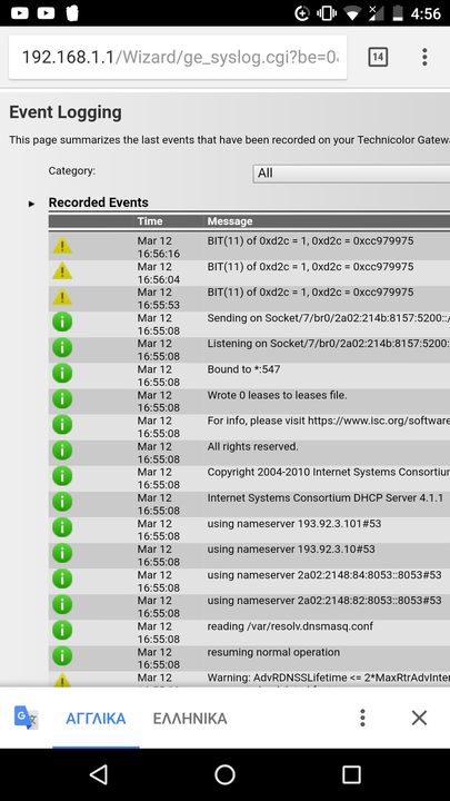 Ecklipse Δημοσ. 12 Μαρτίου 2018 Μέλος Δημοσ. 12 Μαρτίου 2018 (επεξεργασμένο) Αλλαξα και καλωδια και spliter, εχω adsl2+ και το ρουτερ ειναι το technicolor TD5136V2.Τι εννοεις ομως χανει την ip? γτ διαβασα κατι για lease time αλλα δεν ειναι τοσο ακριβης στην ωρα που αποσυνδεεται ( πχ μπορει σε 1 ωρα απο τωρα η σε 2 δεν εχει ακριβεια).Θα το δοκιμασω αυριο στην κεντρικη πριζα αλλα αν ισχυει και εκει τι σημαινει αυτο και τι μπορω να κανω? Και μου εμφανιζει και αυτο το μηνυμα Warning: AdvRDNSSLifetime <= 2*MaxRtrAdvInterval would allow stale DNS servers to be deleted faster Επεξ/σία 12 Μαρτίου 2018 από Ecklipse