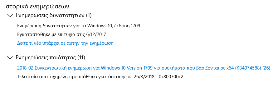 Kenny McCormick Δημοσ. 26 Μαρτίου 2018 Δημοσ. 26 Μαρτίου 2018 Εδώ και αρκετό καιρό το λάπτοπ κάνει πολύ συχνά restart προσπαθώντας να εγκαταστήσει τις πρόσφατες ενημερώσεις των windows 10. 26 φορές συγκεκριμένα!! Το error code (0x80070bc2) σαφώς το googlαρά όμως άκρη δεν έβγαλα αν ξέρει κάποιος κάτι παραπάνω ας βοηθήσει!!