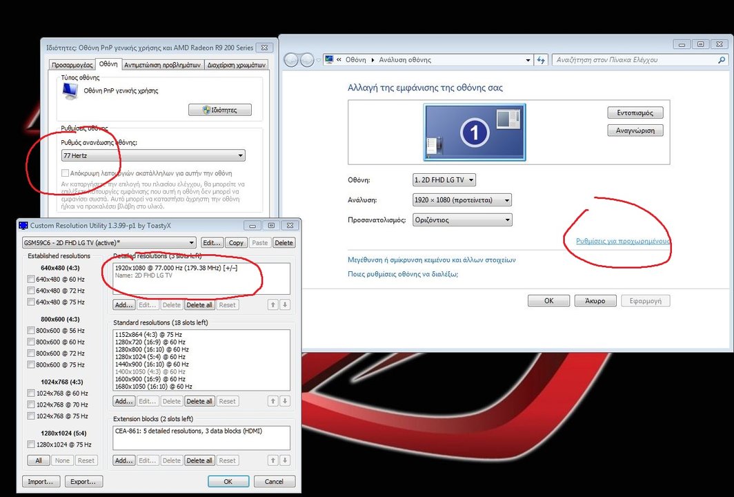 Acmilangr2 Δημοσ. 23 Μαΐου 2018 Δημοσ. 23 Μαΐου 2018 Στις 28/4/2018 στις 11:20 ΠΜ, ultraex2003 είπε δοκιμασε μηπως εσυ μπορεις να κλειδωσεις και παραπανω με το cru utility εγω παιζω με hdmi -dvi εως τα 77 hz αψογα ! μετα βεβαια ειναι εκτος range η lg !!!! εαν το ψαξεις και σου βγει εκτος range τη στιγμη που αλλαζεις συχνοτητα περμενεις λιγο και επανερχετε η εικονα !! https://www.monitortests.com/forum/Thread-Custom-Resolution-Utility-CRU Καλά είναι να κάνεις τεστ v-sync γιατί μπορεί ναι μεν να δουλεύει στην συχνότητα που του έβαλες αλλά να μην συγχρονίζει σωστά. Www.vsynctester.com Η δική μου οθόνη πάει μέχρι 70hz αλλά μόνο στα 60 και 62 δουλεύει σωστά! 1