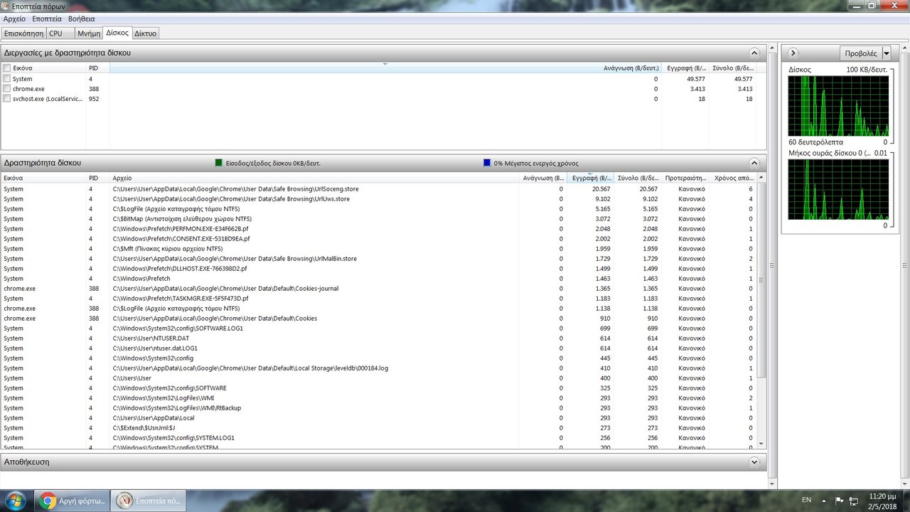 pavloa Δημοσ. 2 Μαΐου 2018 Μέλος Δημοσ. 2 Μαΐου 2018 (επεξεργασμένο) 3 ώρες πριν, micos000 είπε Άνοιξε τη διαχείριση εργασιών και πήγαινε στην εποπτεία πόρων. Μετά πάτα στο tab του δίσκου και στο πάνω τμήμα που λέει Διεργασίες με δραστηριότητα δίσκου πάτα ταξινόμηση κατά Σύνολο (Β/δευτ.). Δες τις διεργασίες που χρησιμοποιούν πολύ τον δίσκο μήπως και βγάλεις άκρη. Αυτά μου βγάζει.. και μετά απο 5 λεπτά με ανοιχτό το chrome Επεξ/σία 2 Μαΐου 2018 από pavloa