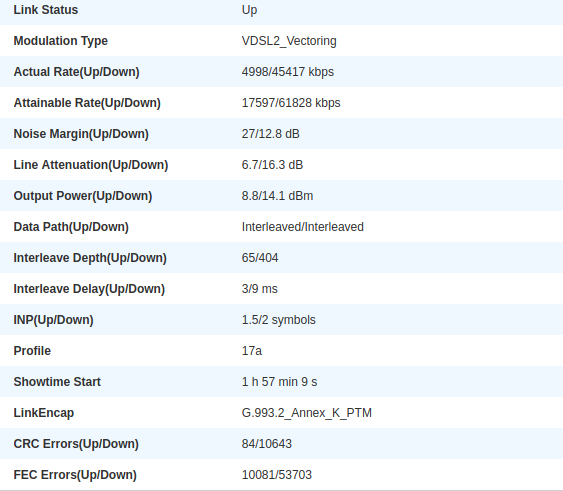 dr_papas Δημοσ. 19 Μαΐου 2018 Μέλος Δημοσ. 19 Μαΐου 2018 (επεξεργασμένο) Ακριβώς παιδιά, το πρόβλημα είναι στη γραμμή στο απερχόμενο δλδ και όχι στο καλώδιο μου. Είμαι εκτός σπιτιού για τα στατιστικά, όμως το line attenuation της γραμμής είναι στα 15db, το sn margin παίζει στα 12db, στην καλή ημέρα της σύνδεσης κλειδώνω κοντά στα 49.000, μαζεύω πολλά λάθη fec χιλιάδες και λίγα crc. Σε κακή ημέρα έχω ένα κάρο αποσυνδέσεις, συνδεομαι σε διάφορες ταχύτητες ενώ τα λάθη και δη τα crc είναι χιλιάδες μέσα σε λίγα λεπτά. Τι έκπτωση να δεχθώ όταν σε κάποια ημέρα δεν μπορώ να κάνω δουλειά μου και έχει τύχει να συγχρονίσει μετά από 2,5 ώρες??? Κάτι γίνεται στη γραμμή πριν από εμένα. Έκανε λέει ενέργειες ο ΟΤΕ. Τι ενέργειε? Δεν είδα να έρθει κάνα συνεργείο στα boxes της γραμμής να δει τι γίνεται. Βρίσκομαι σε προάστιο 6 χλμ από το κέντρο της Πάτρας. Επεξ/σία 19 Μαΐου 2018 από dr_papas