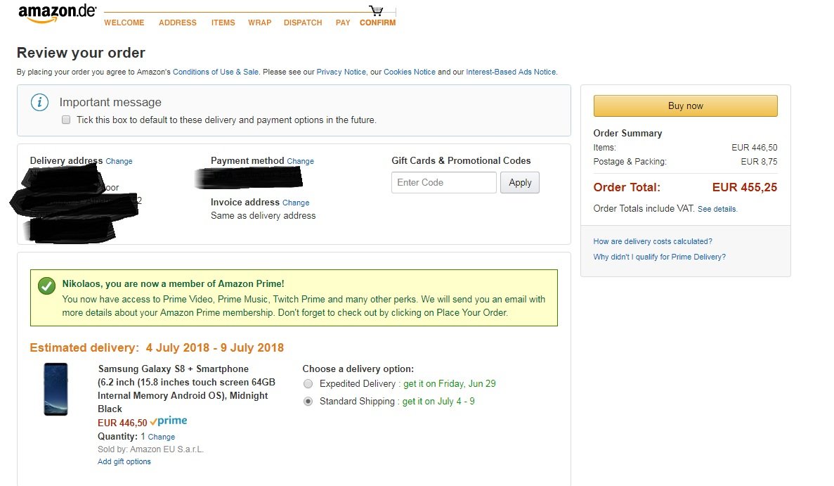 lionheart75 Δημοσ. 26 Ιουνίου 2018 Δημοσ. 26 Ιουνίου 2018 (επεξεργασμένο) Το κινητό του τίτλου στα 455 ευρώ με τα μεταφορικά για Ελλάδα. Πρόκειται για την Single έκδοση. Η τιμή είναι για prime members αλλά μπορείτε να κάνετε εγγραφή δωρεάν για trial 30 ημερών και μετά να διακόψετε. Η τιμή είναι εξαιρετική και αφορά μόνο το Midnight Black. Link: https://www.amazon.de/gp/offer-listing/B06XJ6BTYT/ref=dp_olp_new Ελλάδα skroutz απο 568€ + όποια μεταφορικά και Bestprice απο 496€ + όποια μεταφορικά https://www.skroutz.gr/s/11140429/Samsung-Galaxy-S8-64GB.html https://www.bestprice.gr/item/2155034326/samsung-galaxy-s8-64gb.html?qid=3fHRs0GRjj5_08328&seq=1 Έφτασε η ώρα να αλλάξουμε το S7 μας, οπότε και έπεσε παραγγελία! Επεξ/σία 26 Ιουνίου 2018 από lionheart75 5 1