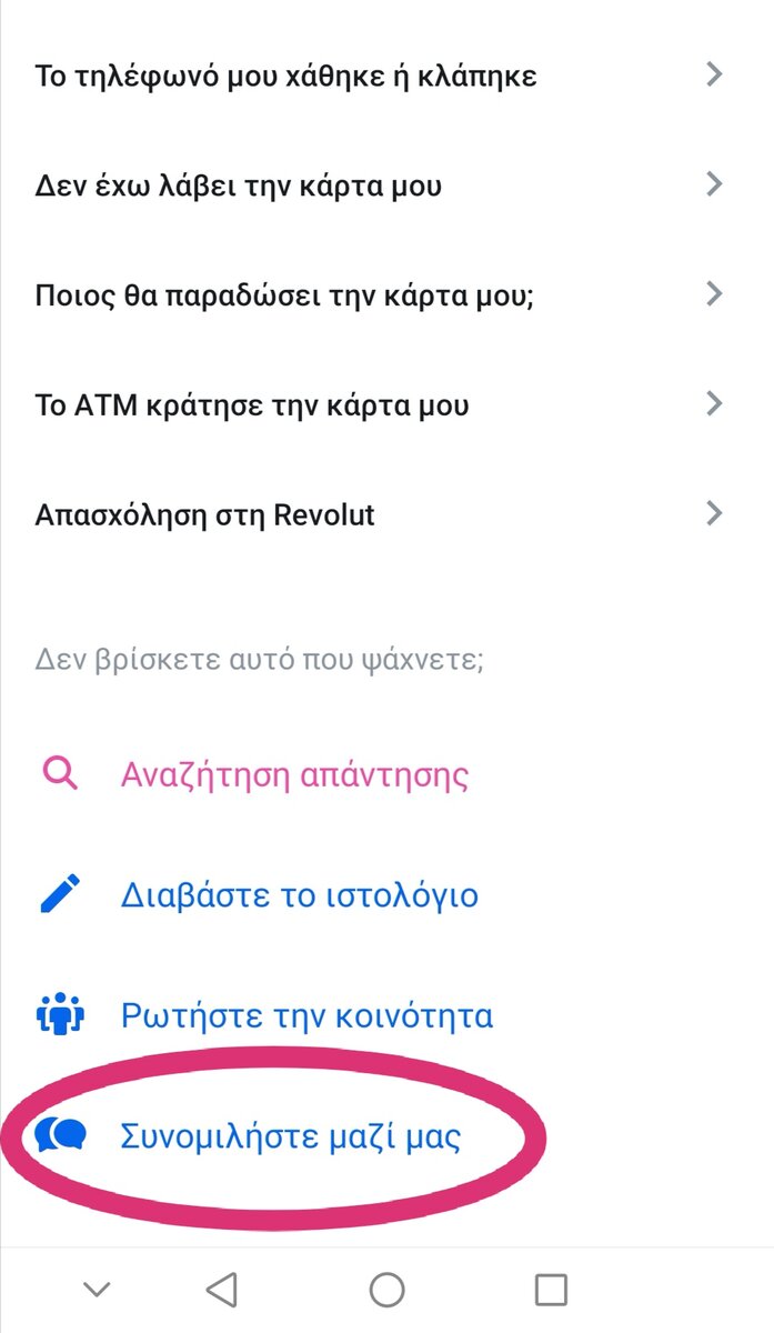 alexpag80 Δημοσ. 27 Ιουλίου 2020 Δημοσ. 27 Ιουλίου 2020 Πήγαινε στην τελευταία καρτέλα της εφαρμογής και δίπλα από το γρανάζι ρυθμίσεων έχει ένα αγγλικό ερωτηματικό. Επέλεξε το και κατέβα τέρμα κάτω υπάρχει ένα πεδίο που γράφει συνομιληστε μαζί μας και επέλεξε νέα συνομιλία.