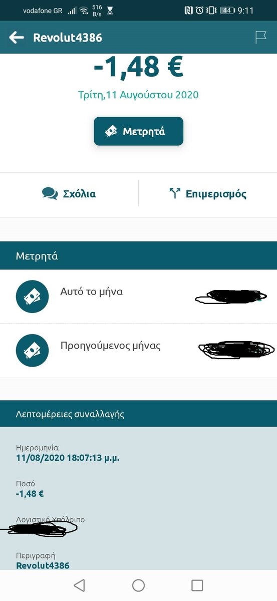 bjj-p Δημοσ. 13 Αυγούστου 2020 Δημοσ. 13 Αυγούστου 2020 31 λεπτά πριν, kostask91 είπε Λοιπόν, έχουμε και λέμε, για κάποιο λόγο έμεινα με αρνητικό υπόλοιπο, -2,58 Ευρώ στη Revolut. Στο λογαριασμό είχα και 1 GBP την όποια και μετέτρεψε σε ευρώ για να "ξεχρεώσω" το παραπάνω ποσό, και τα υπόλοιπα τα τράβηξε ΧΩΡΙΣ ΕΙΔΟΠΟΙΗΣΗ Ή ΕΡΩΤΗΣΗ από τραπεζικό μου λογαριασμό Εθνικής τράπεζας. Συγκεκριμένα πριν λίγες μέρες μου ήρθε ειδοποίηση στο κινητό από το app της εθνικής για χρέωση ποσού 1,48 ευρώ. Λόγω του μεγέθους του ποσού δεν έδωσα σημασία καθώς αρκετές φορές μετά από πληρωμή με κάρτα αργεί να μου έρθει ειδοποίηση στο κινητό. Εν τέλει το 1,48 που δεν ήξερα τι ήταν, το τράβηξε η Revolut. Παρακάτω επισυνάπτω αντίστοιχα screenshots. Στην κίνηση λογαριασμού που κατέβασα από το app της Revolut την παραπάνω χρέωση την έχει καταχωρημένη ως: Περιγραφή: Top-Up by ***** (αριθμός κάρτας) Και η ερώτηση μου είναι η εξής, έχω συνδέσει κάπως εγώ ο ίδιος τους 2 λογαριασμούς; Έχω παραχωρήσει άθελα μου την άδειά μου για κάτι τέτοιο; Ή να επικοινωνήσω με το customer service να τους ξεχέσω (λέμε τώρα). Ελπίζω τώρα να έγινα κατανοητός. Σε παρομοια κατασταση ως προς το 1ο σκελος, εχω γραψει πιο πανω οτι παιρνουν απο οποιοδηποτε λογαριασμο εχει χρηματα και τα μετατρεπουν. Ακομη και απο κρυπτονομισματα. Εχω βαλει και λινκ που το αναφερουν. Ομως δεν λεει για συνδεδεμενους λογαριασμους και καρτες. αυτο ειναι παρανομο και πολυ επιφοβο. γιαυτο πριν λιγο καιρο που εκανα τοπ-απ δεν μου ζητησε επικυρωση της συναλλαγης η τραπεζα και το ειχα ρωτησει εδω. τι ειδους εξαιρεση κανει στα αιτηματα της revolut ως συναλλαγη και δεν ζηταει κωδικο επιβεβαιωσης;. αυτο βεβαια τους δινει την ευχερεια να τραβανε οποτε θελουν οτι θελουν. αν εχεις νεοτερα γραψε εδω, ειναι ενδιαφερον!
