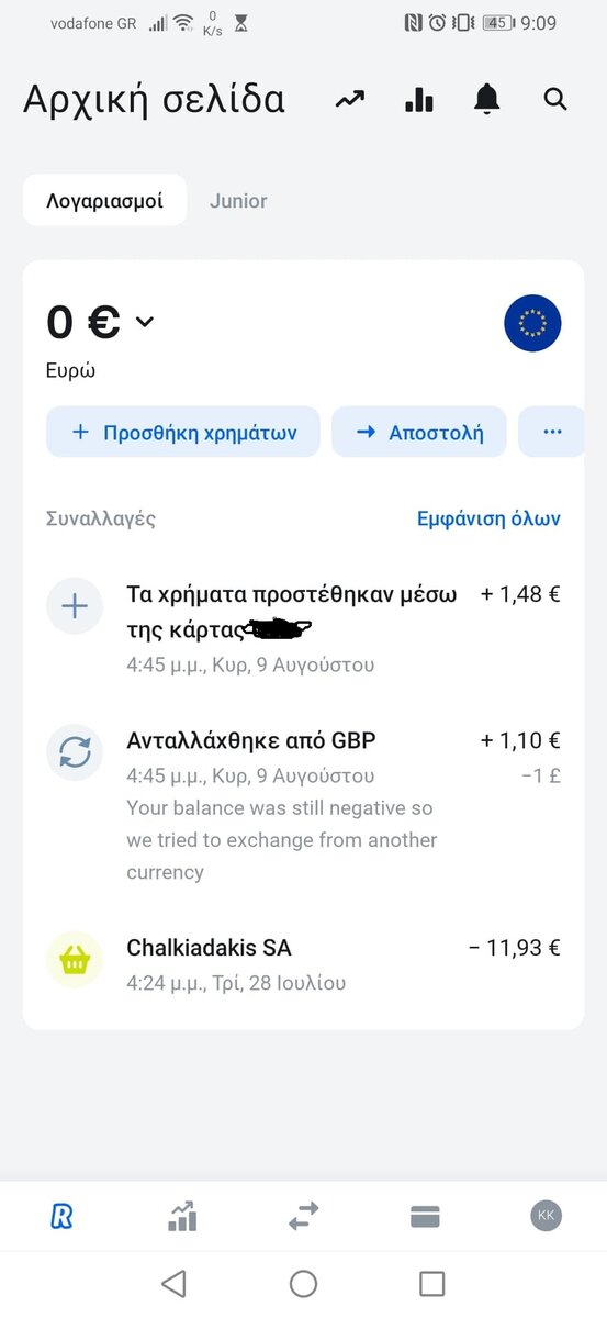 vagstef Δημοσ. 13 Αυγούστου 2020 Δημοσ. 13 Αυγούστου 2020 47 λεπτά πριν, kostask91 είπε Λοιπόν, έχουμε και λέμε, για κάποιο λόγο έμεινα με αρνητικό υπόλοιπο, -2,58 Ευρώ στη Revolut. Στο λογαριασμό είχα και 1 GBP την όποια και μετέτρεψε σε ευρώ για να "ξεχρεώσω" το παραπάνω ποσό, και τα υπόλοιπα τα τράβηξε ΧΩΡΙΣ ΕΙΔΟΠΟΙΗΣΗ Ή ΕΡΩΤΗΣΗ από τραπεζικό μου λογαριασμό Εθνικής τράπεζας. Συγκεκριμένα πριν λίγες μέρες μου ήρθε ειδοποίηση στο κινητό από το app της εθνικής για χρέωση ποσού 1,48 ευρώ. Λόγω του μεγέθους του ποσού δεν έδωσα σημασία καθώς αρκετές φορές μετά από πληρωμή με κάρτα αργεί να μου έρθει ειδοποίηση στο κινητό. Εν τέλει το 1,48 που δεν ήξερα τι ήταν, το τράβηξε η Revolut. Παρακάτω επισυνάπτω αντίστοιχα screenshots. Στην κίνηση λογαριασμού που κατέβασα από το app της Revolut την παραπάνω χρέωση την έχει καταχωρημένη ως: Περιγραφή: Top-Up by ***** (αριθμός κάρτας) Και η ερώτηση μου είναι η εξής, έχω συνδέσει κάπως εγώ ο ίδιος τους 2 λογαριασμούς; Έχω παραχωρήσει άθελα μου την άδειά μου για κάτι τέτοιο; Ή να επικοινωνήσω με το customer service να τους ξεχέσω (λέμε τώρα). Ελπίζω τώρα να έγινα κατανοητός. Αν δεν κάνω λάθος κάπου γράφει ότι αν είσαι σε plan και δεν έχεις χρήματα μέσα μπορούν να τραβήξουν από κάποια αποθηκευμένη κάρτα. Οπότε κάτι παρόμοιο μπορεί να γίνεται και με το αρνητικό υπόλοιπο το οποίο είναι περίεργο το πως συνέβη. Αυτό πρέπει να ψάξεις βασικά και στους όρους χρήσης σε ποια περίπτωση τραβάνε χρήματα.