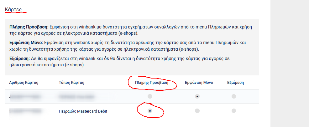 atrias Δημοσ. 23 Αυγούστου 2020 Δημοσ. 23 Αυγούστου 2020 πολύ σημαντική πληροφορία αυτό σχετικά με την πλήρη πρόσβαση! 👍 γνωρίζεις όμως αν υπάρχει η δυνατότητα να γίνει φόρτιση της revolut με debit κάρτα Πειραιώς ΧΩΡΙΣ να έχει κάποιος εγκατεστημένη την εφαρμογή της winbank ? Στις 21/8/2020 στις 8:54 ΜΜ, dimosit είπε Επειτα απο επικοινωνια με το support της Πειραιως βγάλαμε ακρη. Τελικα χρειαζεται να υπαρχει "Πληρης Προσβαση" στην καρτα. Υπαρχει επιλογη μεσα απο τις ρυθμισεις. Δεν ηξερα καν οτι υπαρχει αυτη η επιλογη. Στην δικια μου καρτα ηταν επιλεγμενο το "Εμφανιση μονο" οπου γραφει: Δεν ξερω τι οριζουν ως e-shops , αλλα ειχα χρησιμοποιησει την καρτα για να εξοφλήσω διάφορους λογαριασμούς και για αγορες ακομη και σε e-shops! Αφου ενεργοποίησα την πληρη προσβαση πραγματοποιησα την συναλλαγή και μετα με μετεφερε στο app της Πειραιως για εγκριση, και η συναλλαγη ολοκληρωθηκε επιτυχως! Παρακατω συναπτω και screenshot απο το website της τραπεζας αν χρειαστεί σε καποιον!