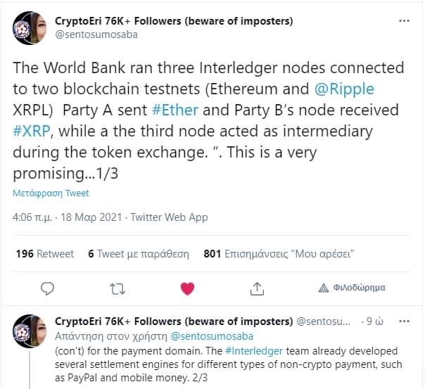 thomasG4 Δημοσ. 19 Μαρτίου 2021 Μέλος Δημοσ. 19 Μαρτίου 2021 Για να καταλάβετε τι παίζει πίσω από τις κλειστές πόρτες. Αυτός που ήταν επίτροπος στο SEC και δήλωσε το 2018 ότι το Ethereum δεν είναι security, φεύγοντας από το SEC βρήκε δουλειά σε δικηγορικό γραφείο που είναι μέλος του Ethereum Alliance. https://entethalliance.org/eea-members/ Ένα μήνα μετά ήρθε και η μήνυση του SEC προς τη Ripple. Ω τι σύμπτωση! 2 1