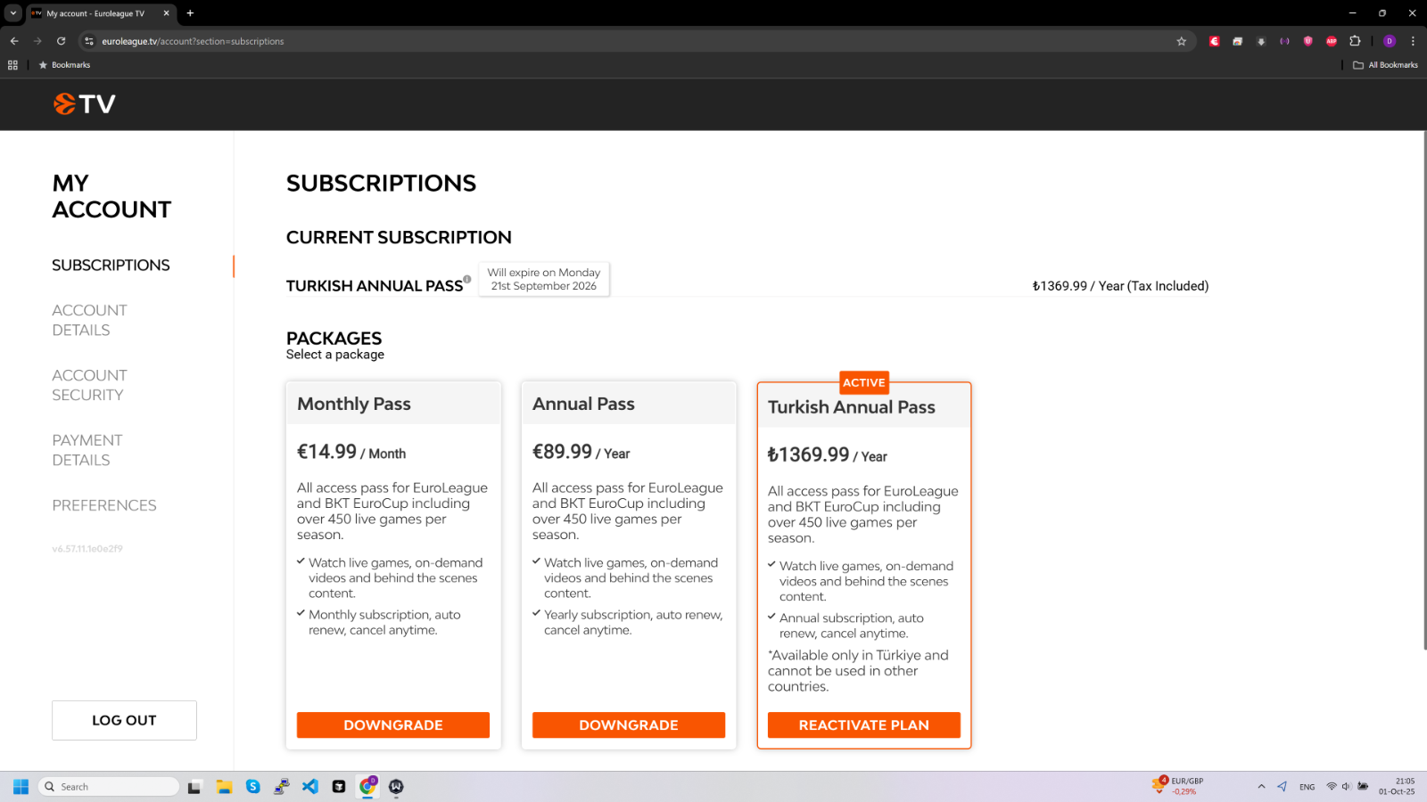 Panosss_2023 Δημοσ. Πέμπτη στις 02:30 μμ Δημοσ. Πέμπτη στις 02:30 μμ 17 ώρες πριν, LeukoSustima είπε Καλησπέρα, μια ερώτηση επειδή δεν κατάλαβα. Είχα φτιάξει ένα προφιλ πέρυσι για έναν φίλο με τούρκικη συνδρομή. Είχα κάνει κανσελ για να μην κάνει αυτόματη ανανέωση. Φέτος αφότου είχε λήξει η συνδρομή, πήγα και έκανα εκ νέου συνδρομή τούρκικη πάλι πριν από λίγες ημέρες. Ενώ όλα φανόντουσαν κομπλε όπως το είδα, και έγραφε εξπαιρ σεπτέμβρη του 2026 (ξαναέκανα κανσελ αμέσως μετά την ενεργοποίηση). Σήμερα πήγε να μπει και του βγάζει τα ματς κλειδωμένα και θέλει απαιτεί συνδρομή για να δει. Δυστυχώς τα vpn που χρησιμοποιούσα δε δουλεέυουν και δεν μπορώ να δω αν δουλεέυει με vpn. Χρειάζεται πλέον vpn για να δεις; edit: η δεύτερη εικόνα είναι όταν πατάω σε ένα ματς που φαίνεται κλειδωμένο. Το Turkish Annual Pass έχει θέμα , κάνε συνδρομή μέσω άλλης χώρας (Βουλγαρίας πχ) καιχθα παίζουν κανονικά χωρίς VPN