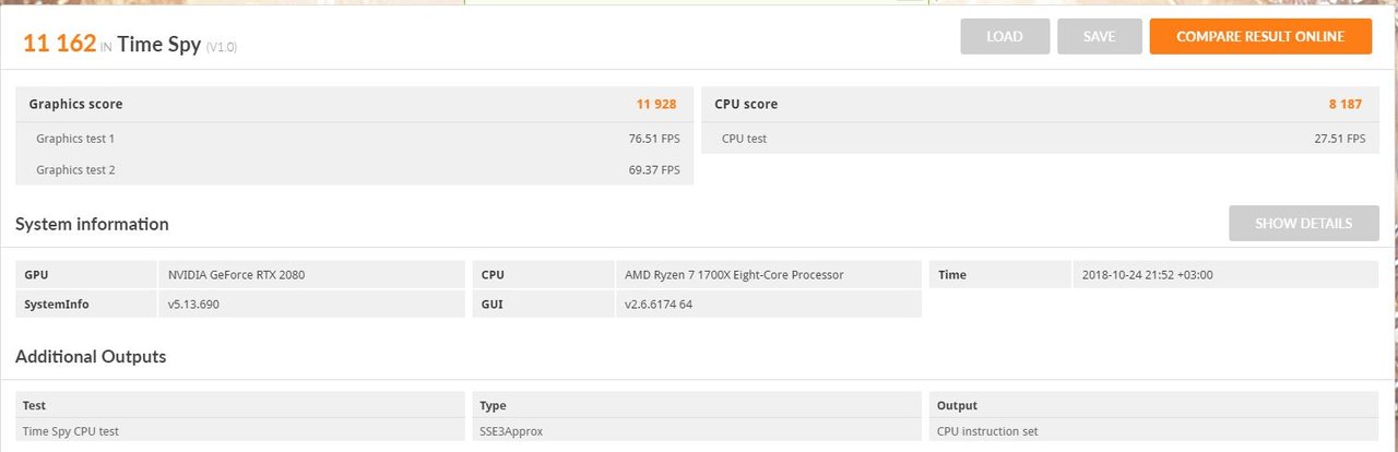 Warlord1981 Δημοσ. 24 Οκτωβρίου 2018 Δημοσ. 24 Οκτωβρίου 2018 (επεξεργασμένο) Μεσα στα περιπου 203 αποτελεσματα με κατοχους cpu/gpu ιδια ακριβως με μενα (1700Χ/RTX2080), έχω το 1ο score 1700X στα 3.8 RTX2080 στα +130/800 και fans σταθερα 75%. Επεξ/σία 24 Οκτωβρίου 2018 από Warlord1981 8