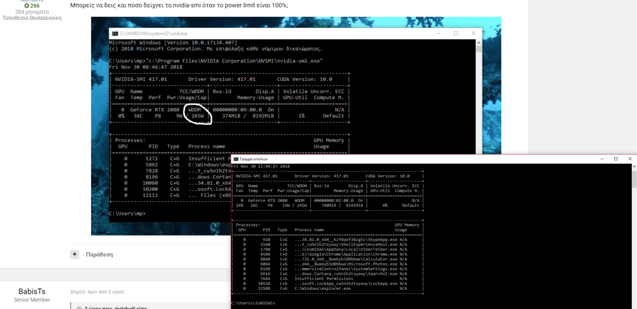 BabisTs Δημοσ. 30 Νοεμβρίου 2018 Δημοσ. 30 Νοεμβρίου 2018 39 λεπτά πριν, malakudi είπε Μπορείς να δεις και πόσο δείχνει το nvidia-smi όταν το power limit είναι 100%; Θα το τσεκάρω.