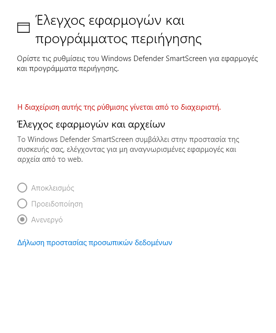 Diama®️ Δημοσ. 9 Οκτωβρίου 2018 Δημοσ. 9 Οκτωβρίου 2018 Καλησπέρα, αντιμετωπίζω το εξής πρόβλημα με την ενεργοποίηση του ελέγχου εφαρμογών και αρχείων. ξέρει κανείς πως δημιουργήθηκε και πως λύνεται??? Να σημειωθεί ότι ο υπολογιστής είναι συνδεδεμένος με ethernet σε κοινόχρηστο δίκτυο πολυκατοικίας