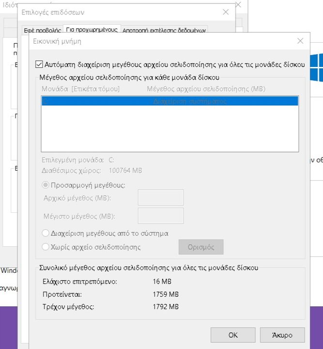 Green Dragon Δημοσ. 3 Δεκεμβρίου 2018 Δημοσ. 3 Δεκεμβρίου 2018 (επεξεργασμένο) Καλησπέρα παιδιά. Μετά από format που έκανα στο laptop, παρατηρώ ότι καθυστερεί να κάνει boot στα Win 10. Επίσης μου βγάζει πρώτα το logo της Lenovo, μετά το logo των windows και μετά από κάμποση ώρα φορτώνει το λειτουργικό. Έχω κάνει διάφορες ρυθμίσεις, αλλά δεν μου κάθονται και χρειάζομαι τη βοήθεια σας. Στην πρώτη καρτέλα έχω: Στη δεύτερη καρτέλα έχω βάλει: Εδώ επιλέγω αριθμό επεξεργαστών 4 και μέγιστη μνήμη 8192, αλλά πάντα μου τα μηδενίζει. Και στην τελευταία δεν ξέρω αν πρέπει να ορίσω αρχείο σελιδοποίησης και πόσο. Αυτά και όποιος μπορεί ας μου δώσει τη γνώμη του! ΕΥΧΑΡΙΣΤΩ! Επεξ/σία 3 Δεκεμβρίου 2018 από Green Dragon