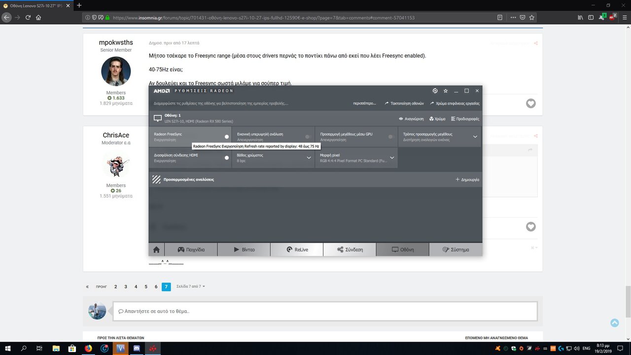 Γιατι δε δινει freesync στα χαρακτηριστικα της.