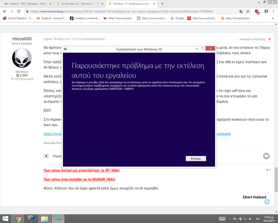 drapanakis Δημοσ. 16 Μαρτίου 2019 Μέλος Δημοσ. 16 Μαρτίου 2019 Οχι, δεν ειναι συντομευση. Δεν εχω αρκετες γνωσεις. Μπορεις να μου πεις σε παρακαλω τι σημαινει αυτο το "" Ολων των χρηστων "" ; Πηγα τωρα να δω απο τον πινακα ελεγχου στο λογαριασμο χρηστων, ουτε εκει ακουει ο υπολογιστης. Καμια αντιδραση οπως και οταν κανω δεξι κλικ στο Ιδιοτητες. Εντωμεταξυ, δοκιμασα να κανω αναβαθμιση σε win 10 απο τα 8.1 που εχει, ακολουθοντας τη διαδικασια που μιλουσαμε πριν λιγες μερες. Τωρα αδυνατον. μου βγαζει αυτο Μαλλον θελει κανονικο φορματ απο την αρχη να τελειωνω.