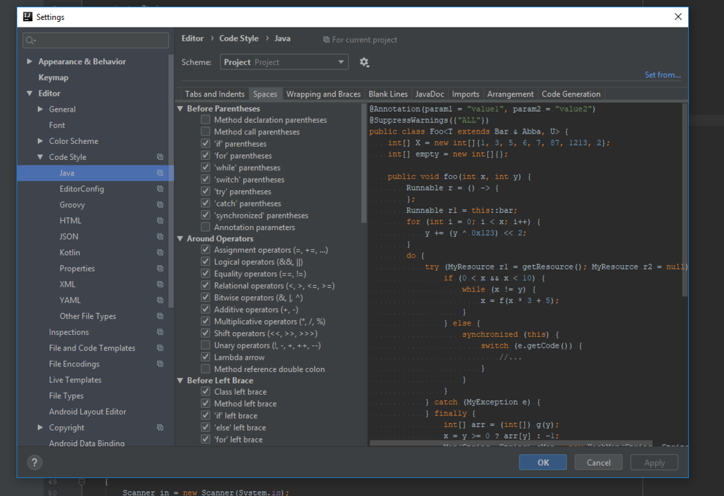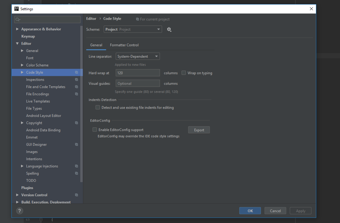 spyros__ Δημοσ. 2 Ιουνίου 2019 Δημοσ. 2 Ιουνίου 2019 Καλημέρα! Κατέβασα το intellij community και ενώ στο code style έχω τικαρισμένες τις επιλογές που θέλω να συμπληρώνονται τα κενά, αυτά δεν συμπληρώνονται. Δοκίμασα να απενεργοποιήσω το EditorConfig plugin όμως το πρόβλημα παραμένει.