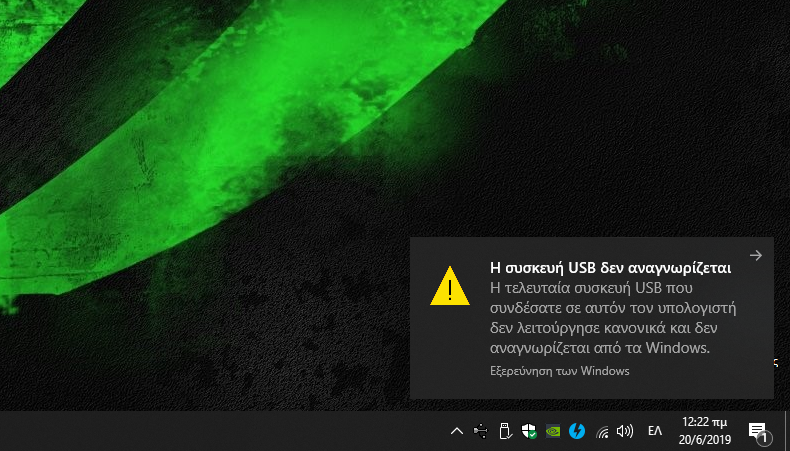 mphxths Δημοσ. 20 Ιουνίου 2019 Δημοσ. 20 Ιουνίου 2019 (επεξεργασμένο) Κοιτα αυτο το μηνυμα βγαινει οταν καποια usb συσκευη δυσλειτουργει οταν συνδεεται στα windows..για ποιον λογο?για μενα ειναι μυστηριο μεχρι και σημερα Εχω δει συσκευες να δυσλειτουργουν στην μια θυρα να παιζουν κανονικα σε αλλη , και μετα απο επανεκιννηση να παιζουν σωστα και στην θυρα που δυσλειτουργουσαν. Αρα κοιτα ποιες συσκευες συνδεεις στα usb και ποτε σου πεταγεται το μηνυμα...επισης μηπως εχει μεινει η ειδοποιηση και απλα θελει να κανεις "clear notification" στο αντιστοιχο εικονιδιο? (τερμα δεξια κατω στην μπαρα ενα τετραγωνο εικονιδιο...) Δοκιμασε ο,τι usb συσκευη θες να συνδεσεις , να την συνδεσεις χωρις usb hub ή usb προεκτασεις..μηπως δημιουργουν αυτα το προβλημα... Επεξ/σία 20 Ιουνίου 2019 από mphxths