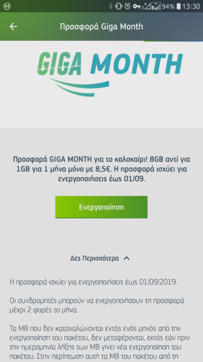 CyberMarco Δημοσ. 2 Ιουλίου 2019 Δημοσ. 2 Ιουλίου 2019 Το πακέτο της προσφοράς μπορεί να ενεργοποιηθεί μέχρι 2 φορές τον μήνα Η προσφορά ισχύει για ενεργοποιήσεις έως 01/09. Υ.Γ. Μπορεί κάποιος να μου επιβεβαιώσει πως αυτά τα giga θα κάνουν stack με τα 600mb που δίνει το φοιτητικό what's up; 3 1