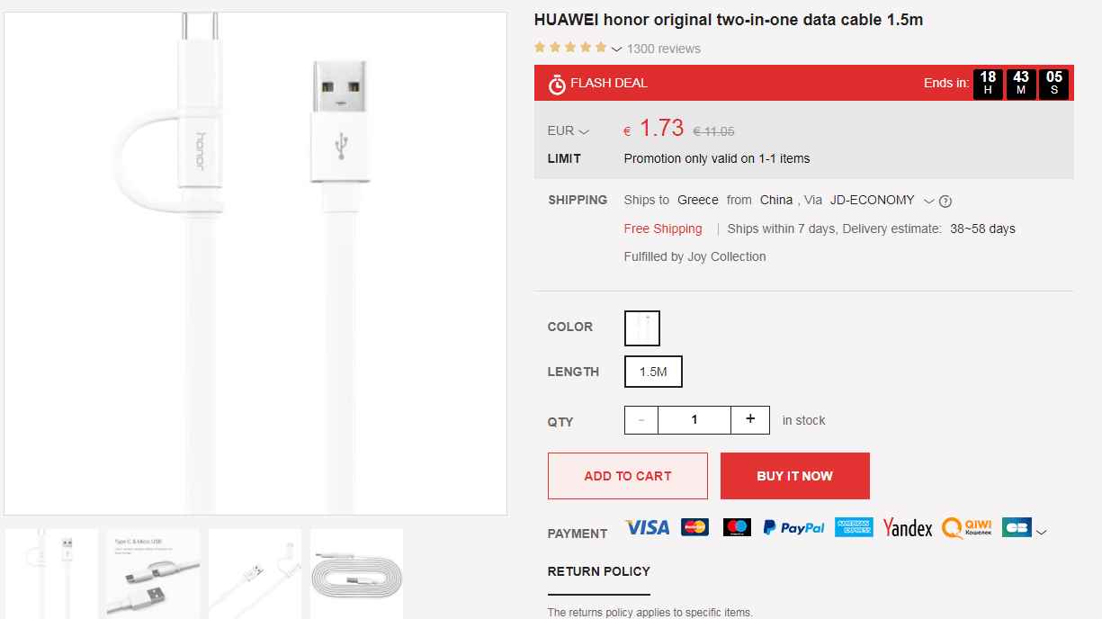 Πήρα από την προηγούμενη προσφορά 2 τεμάχια. Πολύ στιβαρό το adapter. Κανένα θέμα με fast charging. Δεν είχα αντίστοιχο καλώδιο και με έχει καταβολεψει στο pc. 25 μέρες περίπου έκανε να έρθει το 1ο.