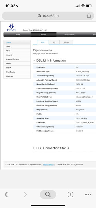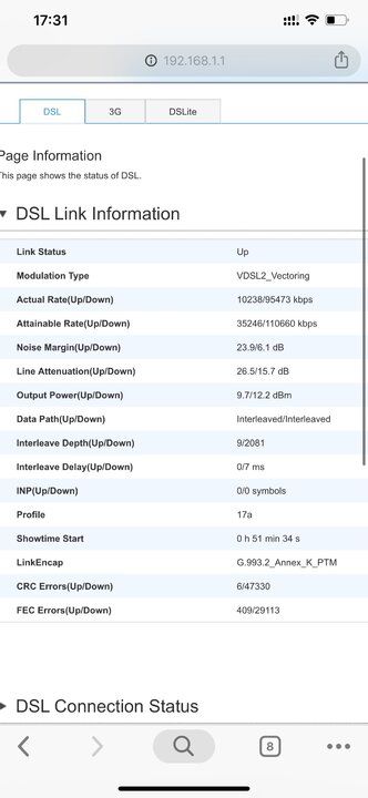 Drake27 Δημοσ. 30 Αυγούστου 2019 Μέλος Δημοσ. 30 Αυγούστου 2019 23 λεπτά πριν, Dantε είπε Ειναι λιγακι χαλια τα στατιστικα της γραμμης παντως. Θα σου ελεγα παρτο συνδεσε το κατω και βγαλε ενα screenshot για να δεις αν ειναι θεμα της καλωδιωσης σου. Θα το πήγαινα κάτω αλλά δεν έχει πρίζα να το συνδέσω. Αυτο που κατάλαβα είναι ότι σαν vdsl είναι πολύ ευαίσθητη,δλδ πριν με την adsl τα καλώδια ήταν έτσι στον αέρα με την μονωτική και δεν είχα θέματα γενικά,μικρό αυξομειώσεις είχα του τύπου 1,5mb κάτω 1mb πάνω. Οσο για αποσυνδέσεις δεν το είχα παρατηρήσει να κάνω σαν adsl. Δεν θα κάθησε σαν ασχοληθώ περιτερο μιας και σε λίγους μήνες θα μετακομίσω σε μόνιμη κατοικία και ποιο καινούργια από εκεί που μένω τώρα. Αυτό είναι τώρα,στα 112 χωρίς καμία αποσύνδεση αλλά βλέπω παρά πολλά crc και fec errors,είναι λογικό?