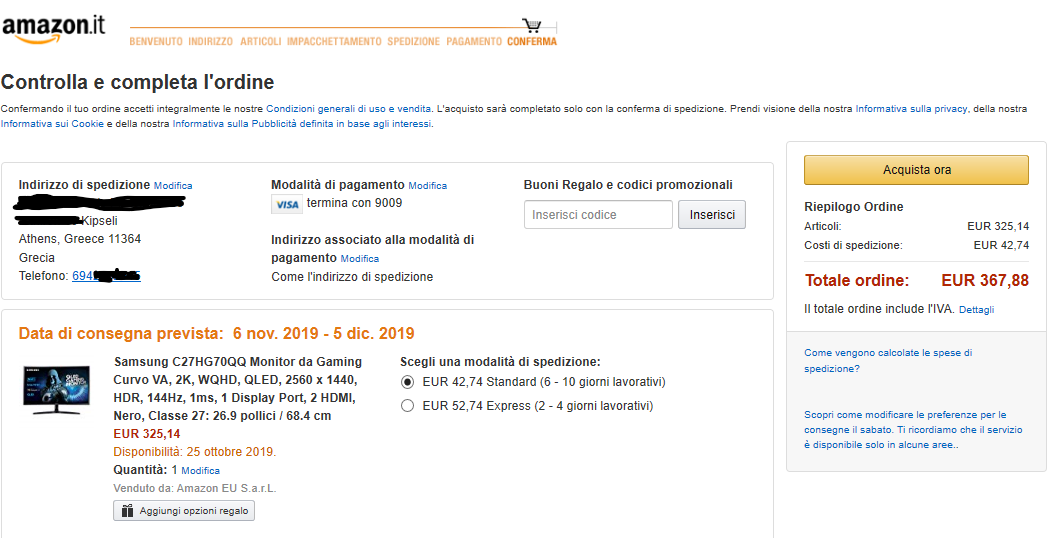 totomis Δημοσ. 10 Οκτωβρίου 2019 Δημοσ. 10 Οκτωβρίου 2019 προσπαθώ να παραγγείλω την οθόνη από το amazon.it αλλά μου λέει πως δεν στέλνει ελλάδα... κάνω κάτι λάθος ή θέλει κάποια συγκεκριμένη διαδικασία;