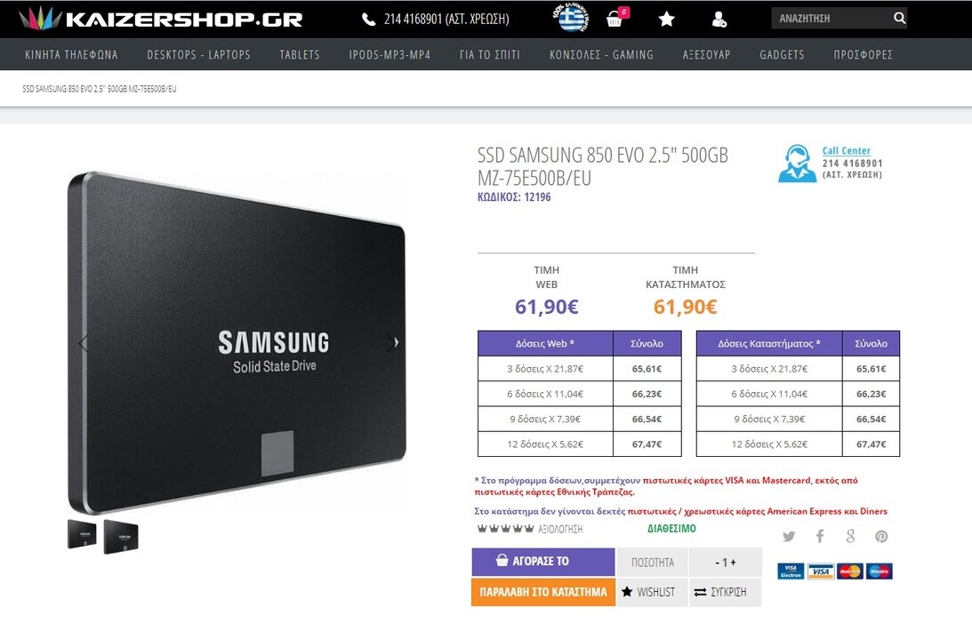imvrios Δημοσ. 7 Σεπτεμβρίου 2019 Δημοσ. 7 Σεπτεμβρίου 2019 (επεξεργασμένο) Αυτό που λέει ο τίτλος. Είναι 59,90€ + 5€ μεταφορικά αν δε παραλάβετε από εκεί. https://www.kaizershop.gr/samsung-ssd-850-evo-500gb-sata-starter-kit-included Στο skroutz η επόμενη τιμή είναι 129€ αλλά είναι μη αντιπροσωπευτική γιατί μιλάμε για δύο καταστήματα: https://www.skroutz.gr/s/5918223/Samsung-850-Evo-500GB.html Είναι όμως γενικά εξαιρετική τιμή. Και στα διάφορα idealo ξεκινά από 80€ (χωρίς τα συγκεκριμένα φτηνά καταστήματα να στέλνουν Ελλάδα): https://www.idealo.it/confronta-prezzi/4661310/samsung-850-evo-500gb.html Επεξ/σία 7 Σεπτεμβρίου 2019 από imvrios 3 2