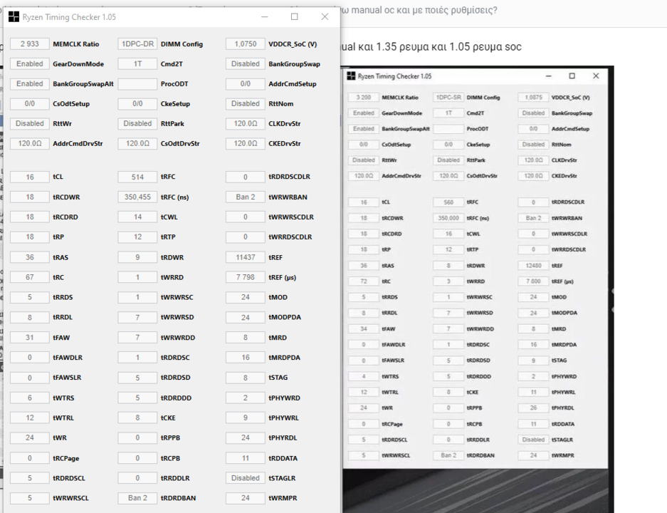 Sheogorath Δημοσ. 3 Οκτωβρίου 2019 Δημοσ. 3 Οκτωβρίου 2019 (επεξεργασμένο) 11 λεπτά πριν, rakeesh είπε Αυτα τα έχω τωρα στα 3000 σε σχέση με τα δικά σου. Εσύ έχεις Vsoc 1.0875? Ίσως είναι οριακό το trfc για τα 3200. Εγώ θέλω 500 για 3400, αλλά έχω δει άλλους και 560. Βάλε χειροκίνητα 560 και τα άλλα auto. Οι μνήμες θέσεις 2-4 ετσι; Επεξ/σία 4 Οκτωβρίου 2019 από Sheogorath 1