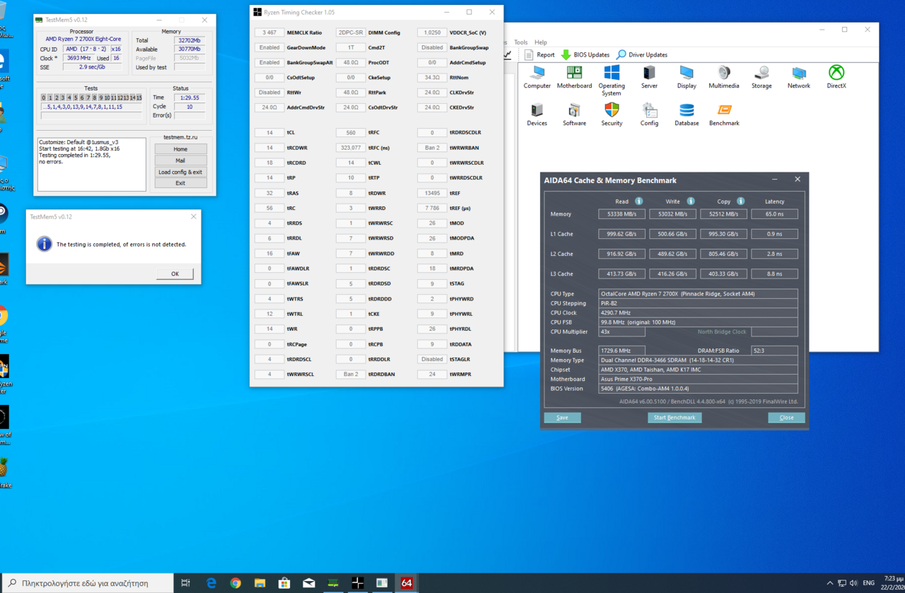 malakudi Δημοσ. 22 Φεβρουαρίου 2020 Δημοσ. 22 Φεβρουαρίου 2020 (επεξεργασμένο) Για τους κατόχους της ASUS Prime X370 Pro έχω ενδιαφέροντα νέα. Όπως ξαναέγραψα η μητρική δυσκολεύεται να κρατήσει πάνω από 3066 τις μνήμες error-free με 2 DIMMs Crucial Ballistix 3200CL16 Micron E-die με επεξεργαστή Ryzen 2700X. Πάνω από τα 3066 έχει πολύ περίεργη συμπεριφορά τόσο με 2 όσο και με 1 DIMM, όπου μια φορά μπορεί να βγάλει 8-9 κύκλους TM5 και στο επόμενο boot να πετάει λάθη από το πρώτο cycle. Αυτή η συμπεριφορά με έκανε να πιστέψω πως το ένα από τα δύο DIMM ήταν χαλασμένο και ζήτησα από την Amazon να μου στείλει νέο kit. Έχοντας λοιπόν 4 DIMMs Crucial Ballistix 8GB 3200CL16 Micron E-Die, όχι μόνο κατάφερε να ολοκληρώσει δέκα κύκλους TM5 στα 3200, το κατάφερε και στα 3266, και στα 3333 και στα 3400! Το πρώτο kit δοκιμάστηκε στο άλλο μηχάνημα (X470 Prime Pro και 3900Χ) και έπαιξε 3733 CL16 εύκολα, οπότε δεν ήταν καμία χαλασμένη τελικά. Η μητρική δηλαδή συμπεριφέρεται πολύ καλύτερα και με τα 4 DIMM slots γεμάτα, απ' ότι με 1 ή 2 DIMMs! Κάτι που είναι χαρακτηριστικό των T-Topology μητρικών σύμφωνα με τον Buildzoid, αλλά δε μπορούσα να το πιστέψω ότι ισχύει. Θα συνεχίσω τις δοκιμές και για παραπάνω από 3400. Και μία photo για το ιστορικό Επεξ/σία 22 Φεβρουαρίου 2020 από malakudi 3