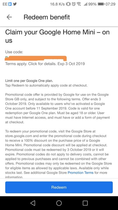 infamousjohn Δημοσ. 20 Σεπτεμβρίου 2019 Δημοσ. 20 Σεπτεμβρίου 2019 Ότι λέει ο τίτλος. Όσοι ήταν συνδρομητές του Google one πριν τις 11 Σεπτεμβρίου, μπορούν να κάνουν claim ενα home mini μέχρι τις 3 Οκτωβρίου. Μέχρι και τα μεταφορικά μου τα έβγαλε δωρεάν!! 1