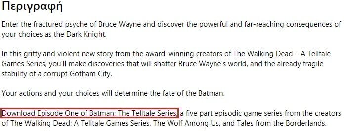 paparockas Δημοσ. 29 Σεπτεμβρίου 2019 Δημοσ. 29 Σεπτεμβρίου 2019 (επεξεργασμένο) 1 ώρα πριν, DsLmAnIaC είπε Μπορούμε να το επιβεβαιώσουμε; Οποιον ενδιαφερει Δωρεαν και το Batman: The Enemy Within - The Telltale Series Episode 1 https://www.microsoft.com/el-gr/p/batman-the-enemy-within-the-telltale-series/9nhp3fm9srtv?activetab=pivot:overviewtab (Παρεπιπτοντως τα πρωτα επεισοδια στις κονσολες ειναι τζαμπα, στο steam τα κανουν bundle και τα 5 για να τα αγορασεις ολοκληρωμενα και δεν μπορεις να το παιξεις μεμονωμενα) Επεξ/σία 29 Σεπτεμβρίου 2019 από paparockas 1 2