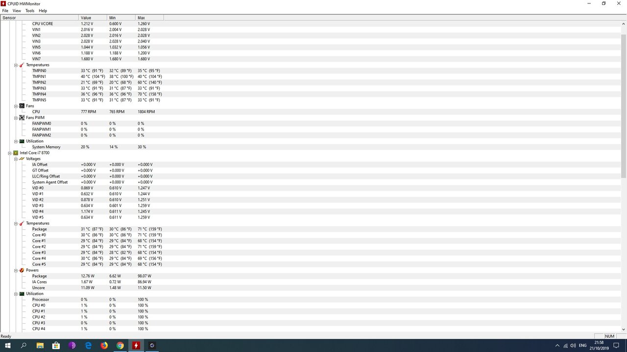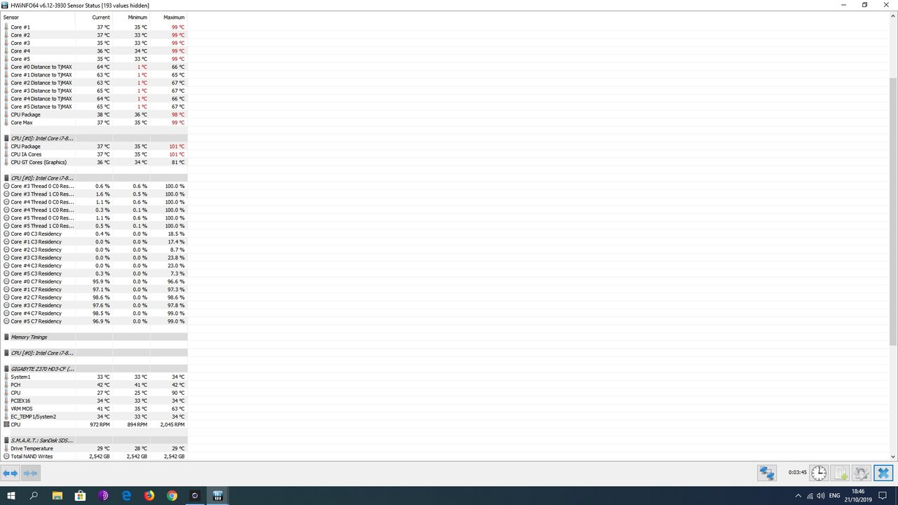 _Theo_ Δημοσ. 21 Οκτωβρίου 2019 Δημοσ. 21 Οκτωβρίου 2019 Καλησπέρα. Πρόσφατα άλλαξα τον i5-8400 μου με ένα i7-8700. Το πρόβλημα είναι ότι όταν τρέχω το Cinebench για να παρατηρήσω τις θερμοκρασίες, αυτές είναι πολύ μεγάλες!! Δηλαδή το CPU φτάνει στους 100 βαθμούς Κελσίου!! Η μητρική μου είναι η Gigabyte Z370 HD3 και η ψύξη του CPU το Coolermaster Hyper H411R WH LED. Επίσης το κουτί είναι ένα παλιό αλλά καλό Full Tower της Chieftec με ένα ανεμιστήρα πίσω, αν και αυτό δεν νομίζω να παίζει ρόλο. Το περίεργο είναι ότι 100 βαθμούς είχε ΚΑΙ με τη Stock ψύκτρα!! Και αναρωτιέμαι πως είναι δυνατόν να μην έχει διαφορά με την καινούργια και να φτάνει και με αυτήν στους 100!! Πραγματικά δεν μπορώ να καταλάβω τι συμβαίνει. Μήπως παίζει ρόλο ότι αγόρασα το CPU από τις "προσφορές" (Stock Clearance) που είχε το Πλαίσιο και μου έδωσαν κάποιο ελαττωματικό; Αν και το κουτί δεν φαινόταν να είχε ανοιχτεί... Υπάρχει περίπτωση να δίνει λάθος ενδείξεις η μητρική διότι αν και φτάνει στους 100 βαθμούς δεν κάνει restart το PC !;!; Αν μπορεί να βοηθήσει κάποιος θα το εκτιμούσα!! Παρακάτω ανέβασα και screenshot από το HWInfo για του λόγου το αληθές...