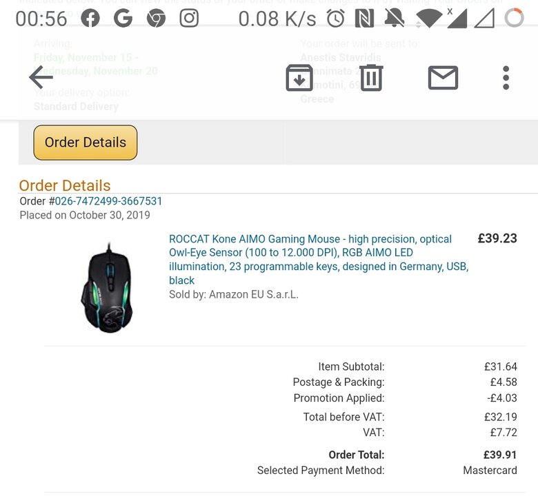Δημοφιλής ανάρτηση DsLmAnIaC Δημοσ. 30 Οκτωβρίου 2019 Δημοφιλής ανάρτηση Δημοσ. 30 Οκτωβρίου 2019 (επεξεργασμένο) Spoiler ROCCAT Kone AIMO Gaming Mouse – high precision, optical Owl-Eye Sensor (100 to 12.000 DPI), RGB AIMO LED illumination, 23 programmable keys, designed in Germany, USB, black 54,06 με μεταφορικά @ amazon.co.uk (Διαθέσιμο από 7 Νοεμβρίου) (51 ευρώ συν κόστος μετατροπής από την τράπεζά μας αν πληρώσουμε σε λίρες) Edit: Τρέχει προωθητική ενέργεια για 7 ευρώ έκπτωση στην επόμενη αγορά μας με αγορά Gift Card αξίας 50 λιρών. Ίσως να μπορεί να χρησιμοποιηθεί και αυτή. Spoiler Ελλάδα από 69.93 συν μεταφορικά. (Κατώτερη τιμή τα 58 ευρώ το Μάιο και τα 50 τον Ιούλιο για δύο ημέρες στο Myscreen) Σελίδα του προϊόντος στο επίσημο site Spoiler Spoiler Ιστορικό τιμής amazon.co.uk (Παραμένει από τις 24 Σεπτεμβρίου σε αυτή την τιμή) Spoiler Reviews εδώ Επεξ/σία 3 Νοεμβρίου 2019 από DsLmAnIaC 33 3